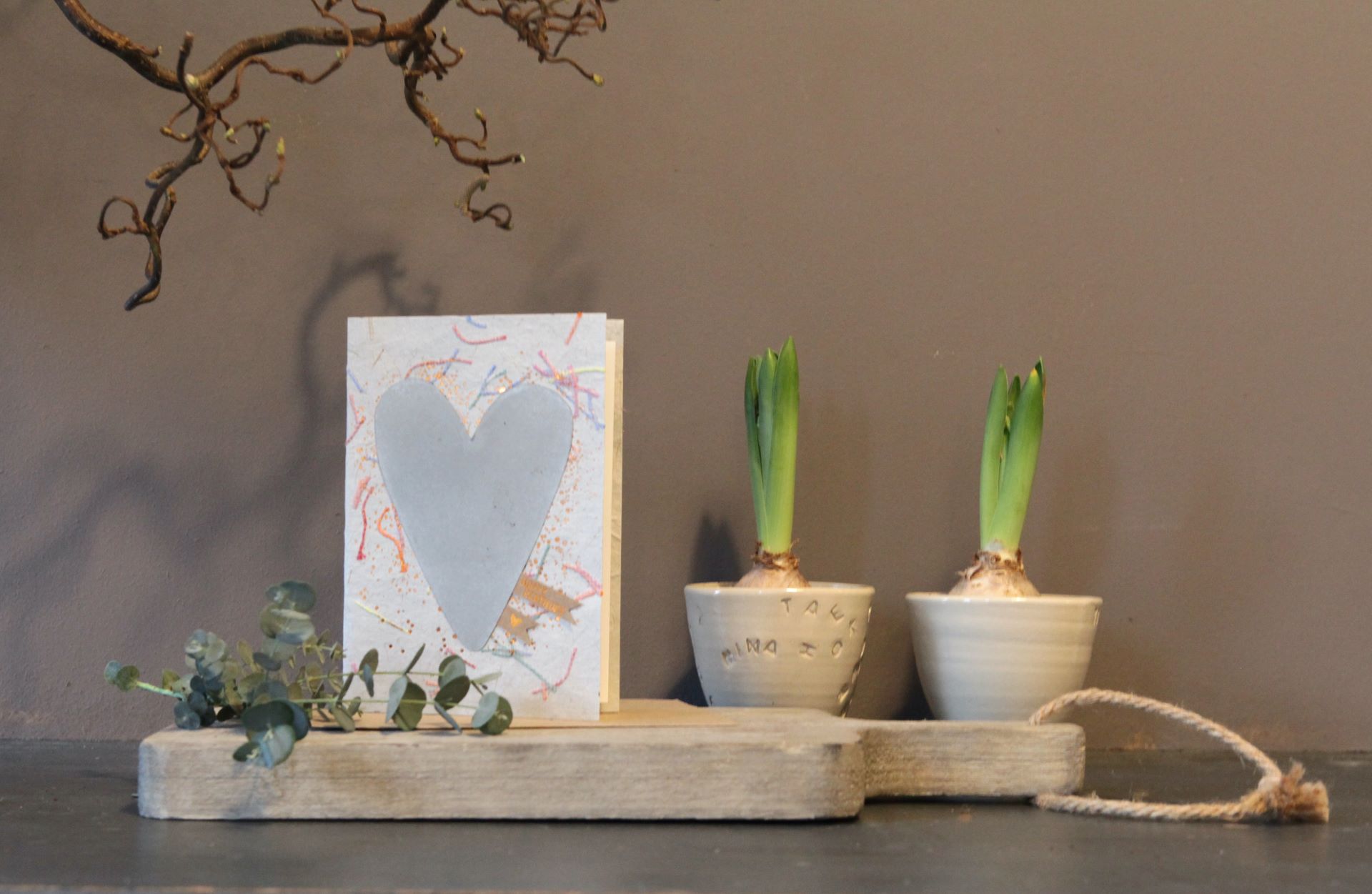 - Design: Handgeschöpfte Karte mit filigranem Metallherz
