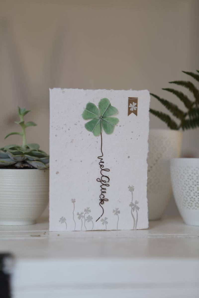 Glücksklee Karte – Handgefertigte Karte mit Draht & Transparentpapier von Good Old Friends