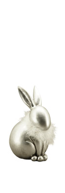 Der Hase ist in einem edlen, neutralen Grauton gehalten – modern, zeitlos und elegant zugleich.