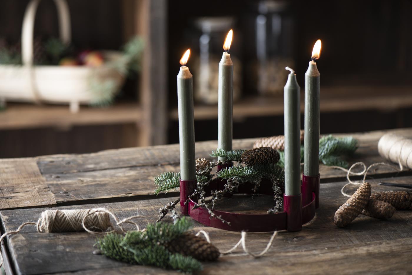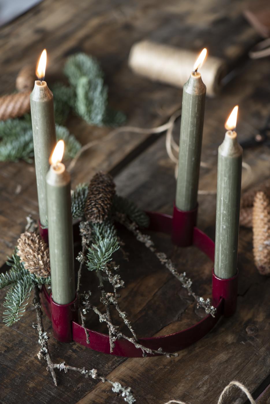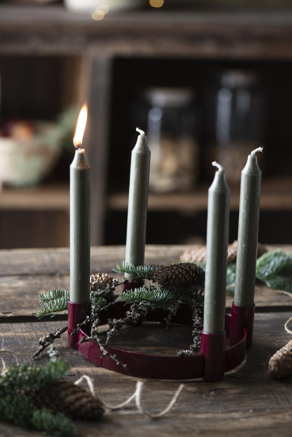 Adventskerzenhalter für 4 Stabkerzen mit verschiebbaren Haltern von IB Laursen – in Rot oder Olivgrün