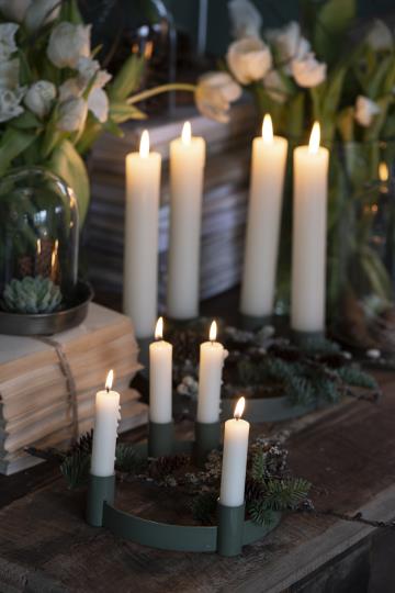 Der Adventskerzenhalter ist für handelsübliche Stabkerzen ausgelegt. Achten Sie auf passenden Durchmesser und einen sicheren Sitz.