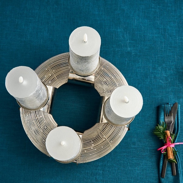 Der Leuchter Mady von Werner Voß ist da! Dieser schöne Adventskranz ist ideal für die Adventszeit. Er ist aus silbernem Edelstahl gefertigt und kann vier Kerzen aufnehmen. Der außergewöhnliche Kerzenständer ist stabil und elegant und macht auf jedem Tisch eine gute Figur. Der Kerzenständer Mady von Werner Voß ist die perfekte Art, den Advent zu feiern.