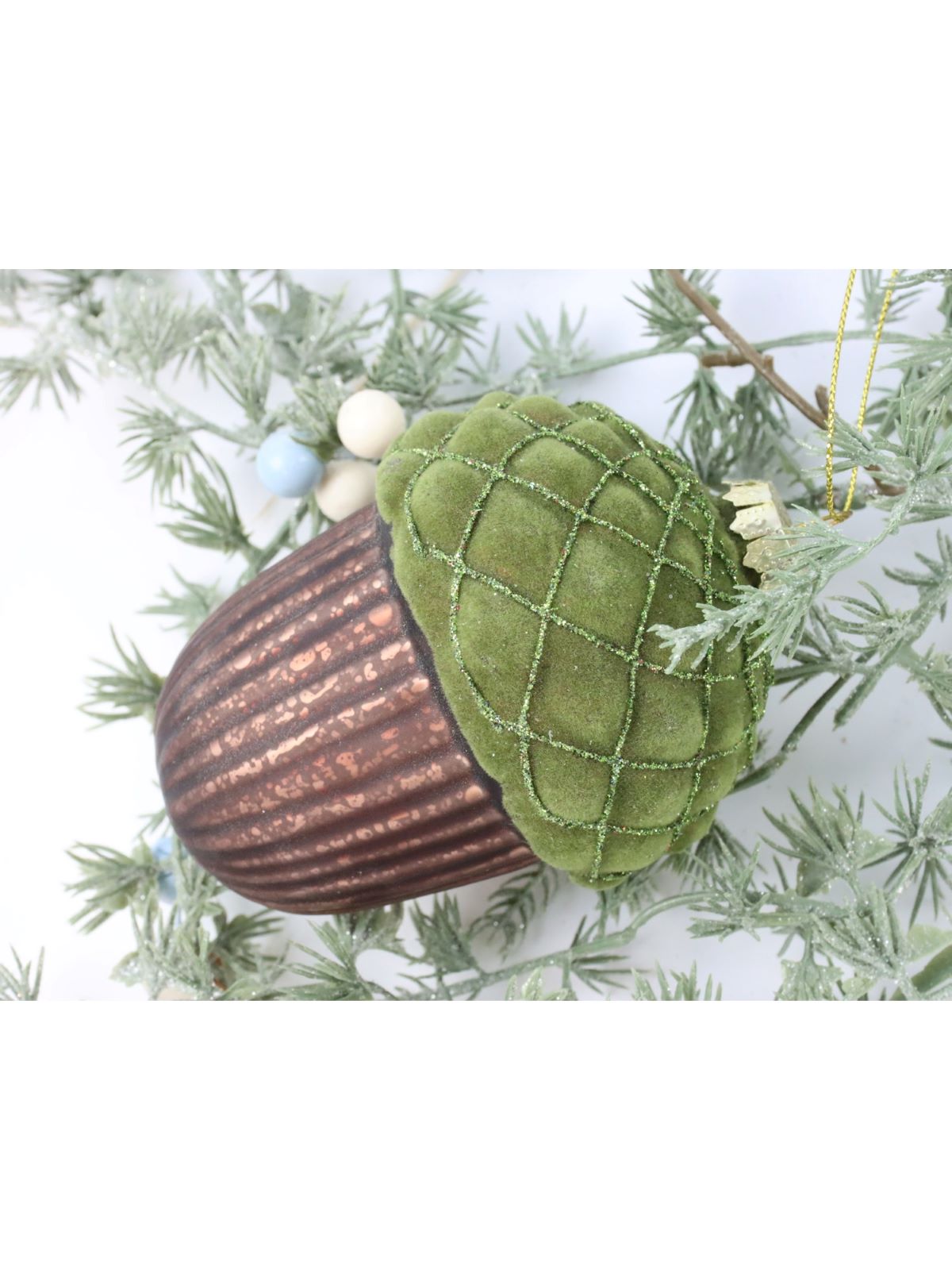 Deko-Glasschmuck Grüne Eiche – Elegante Weihnachtsanhänger aus Glas & Samt