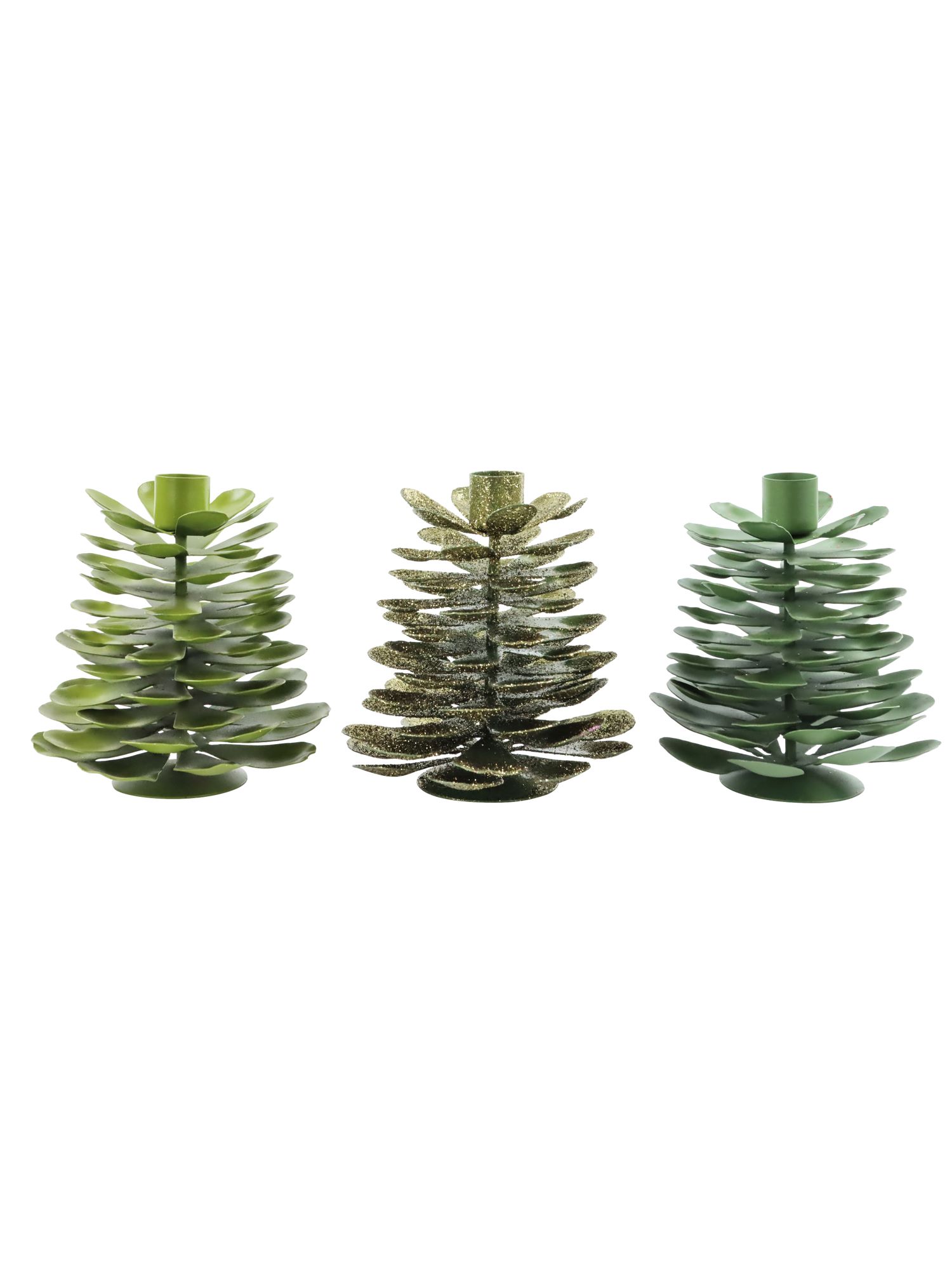 Metallleuchter „Pine“ – Grüner Stabkerzenhalter im Tannenbaum-Design