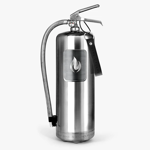 Wir präsentieren den Feuerlöscher 6 kg - aus handpoliertem Edelstahl von Nordic Flame! Unser eleganter und handpolierter Feuerlöscher aus Edelstahl ist perfekt für jedes Haus oder Unternehmen. Er sieht nicht nur stilvoll aus, sondern ist auch mit einem schwarzen Lederriemen ausgestattet, damit Sie ihn leicht transportieren können.