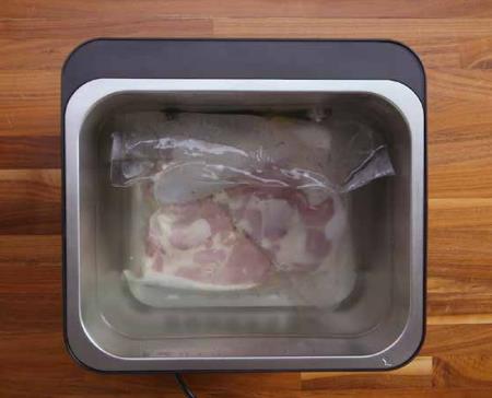 Diese Zubereitungsart kam lange Zeit nur in der gehobenen Gastronomie vor. Die Lebensmittel werden in Beutel vakuumiert und dann im Wasserbad bei niedrigen Temperaturen bis 100 °C verschieden lang gegart. Die wichtigsten Punkte sind somit die Zeit und die Temperatur die ein Produkt mindestens benötigt, diese beiden Faktoren sind abhängig vom Produkt und dessen Größe. Ein 7 cm dickes Steak braucht einfach länger als ein Steak mit 3 cm dicke.