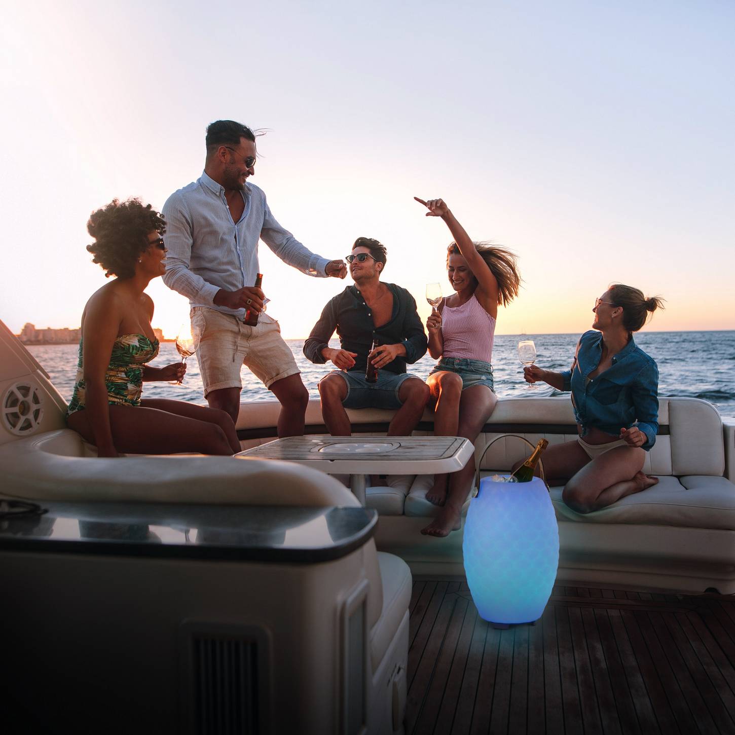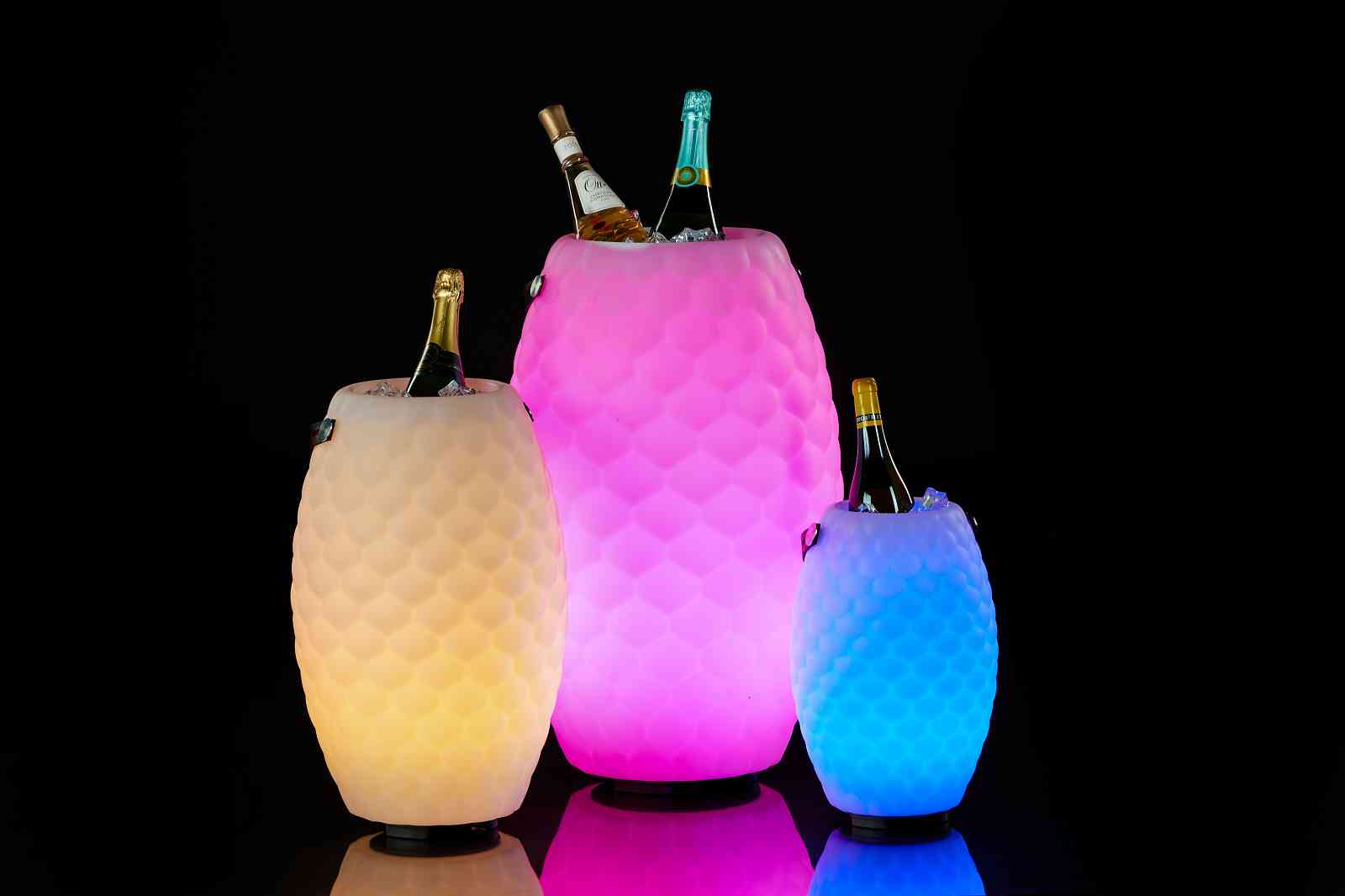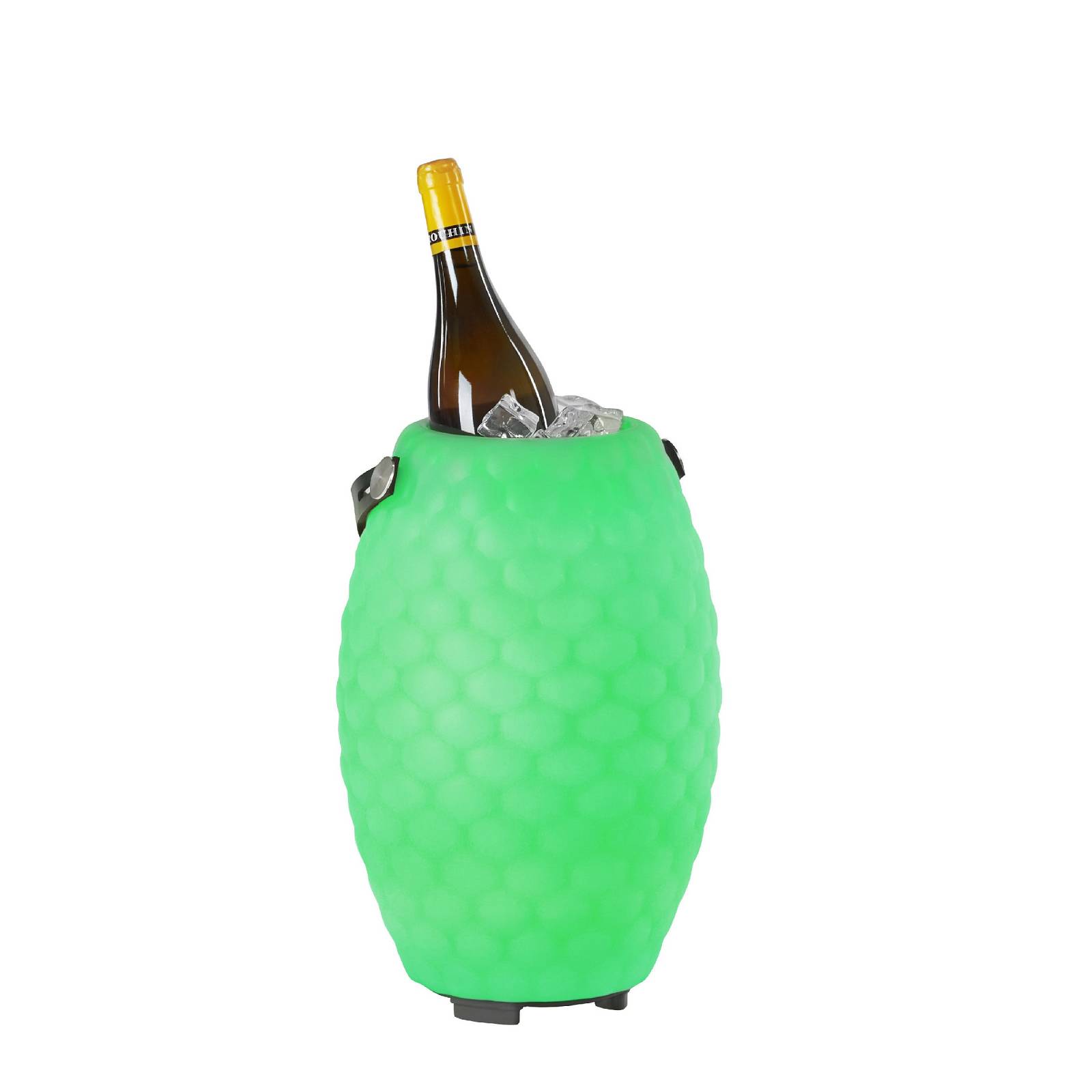 | Eigenschaft: | 4 verschiedene Farbspiel-Optionen, 9 warme Lichtfarben, dimmbar, akkubetrieben, kabellos, Behälter für Eiswürfel oder auch als Blumenvase nutzbar, komplett wasserdicht, Bluetooth Lautsprecher, 10W Breitband Lautsprecher, IP66 Wassergeschützt, Micro-USB-Anschluss 5V / 1A, SYNC-Funktion, Tragegriff aus hochwertigem Rindsleder, Weinkühler für eine Flasche, bedienung per App oder Fernbedienung möglich |