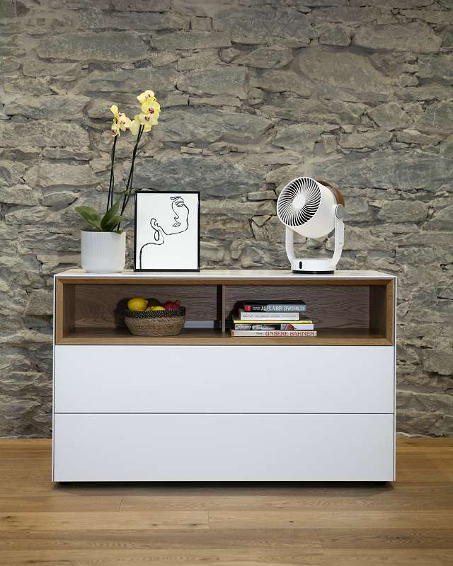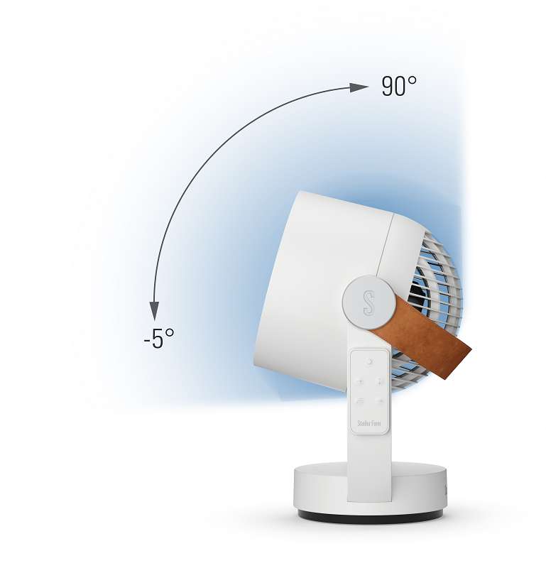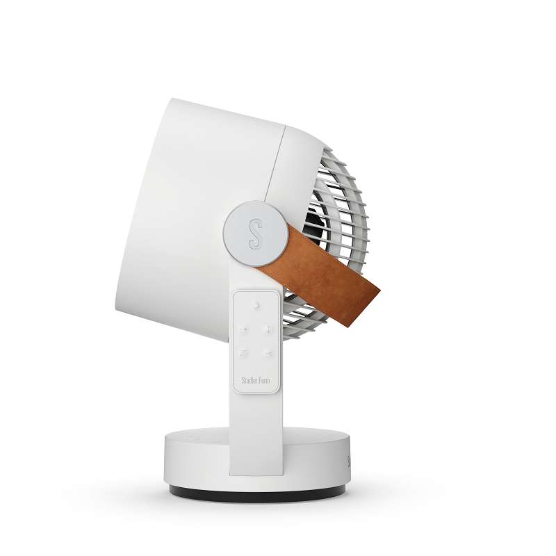 Der 3D-Ventilator LEO - weiß mit Kunstledergriff von Stadler Made dreht sich sowohl vertikal als auch horizontal und lässt somit die Luft im Raum optimal zirkulieren. Stellen Sie individuell ein, wie weit der Ventilator sich nach links und rechts drehen soll. Abhängig von der Raumtemperatur können Sie eine von 4 Geschwindigkeitsstufen wählen. Praktisch ist auch die Timer Funktion, mit dem Sie einstellen können, nach wie vielen Stunden (bis zu 7 h) sich der Ventilator abschalten soll. Mithilfe der magnetischen Fernbedienung, die Sie an der Seite des Tischventilators anbringen können, können Sie die zahlreichen Funktionen nach Belieben einstellen.